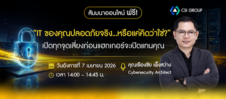 [Webinar] ฟรี เรียนรู้การประเมินความเสี่ยง IT ค้นหาช่องโหว่ พร้อมแนวทางป้องกันก่อนเกิด Data Breach สำหรับ Cyber Security องค์กรและโรงงาน